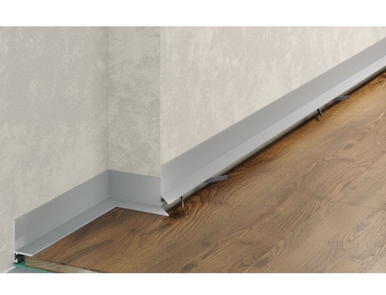 Версия микроплинтуса с заходом на стену. Для людей, которые беспокоятся об отделке стен во время уборки. Тонкая линия, образованная профилем обеспечивает помещению эстетичный внешний вид и создает пространство для акцентов.